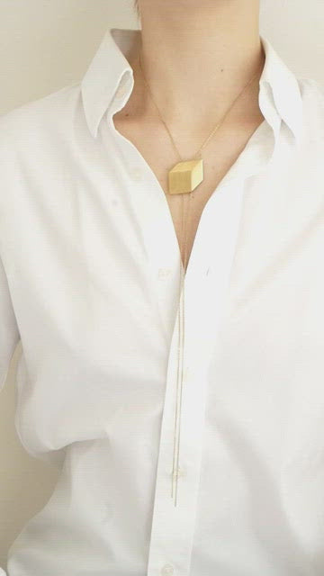 Le sautoir Cube est une pièce iconique de la marque par son effet trompe l’oeil et son principe ajustable. Grâce à un système ingénieux, votre cube se règle à la hauteur que vous souhaitez, en ras du cou ou en sautoir. Chaque face du cube est brossée à la main dans des sens différents pour une finition subtile qui accentue l’effet trompe l’oeil. Une pièce sophistiquée par sa conception, surprenante par son volume et élégante à porter. Existe en finition dorée.